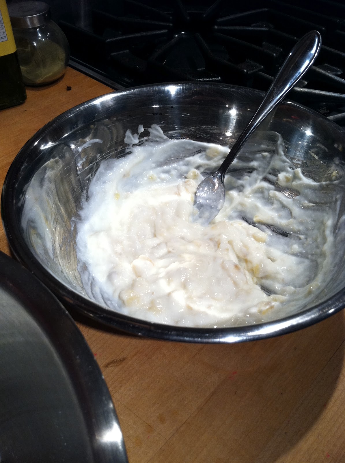 2. In a small bowl, stir together mashed banana and yogurt of choice.